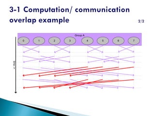 The document discusses a test suite developed by researchers to evaluate the performance of MPI implementations that support MPI_THREAD_MULTIPLE. The test suite includes tests that measure overhead of thread safety, concurrent progress through bandwidth and latency tests, and ability to overlap computation and communication using threads. The tests were run on several MPI implementations and results showed that MPICH2 generally had lower overhead and better performance than Open MPI, IBM MPI and SUN MPI in threaded environments. The researchers plan to expand the test suite to evaluate other threaded MPI features.