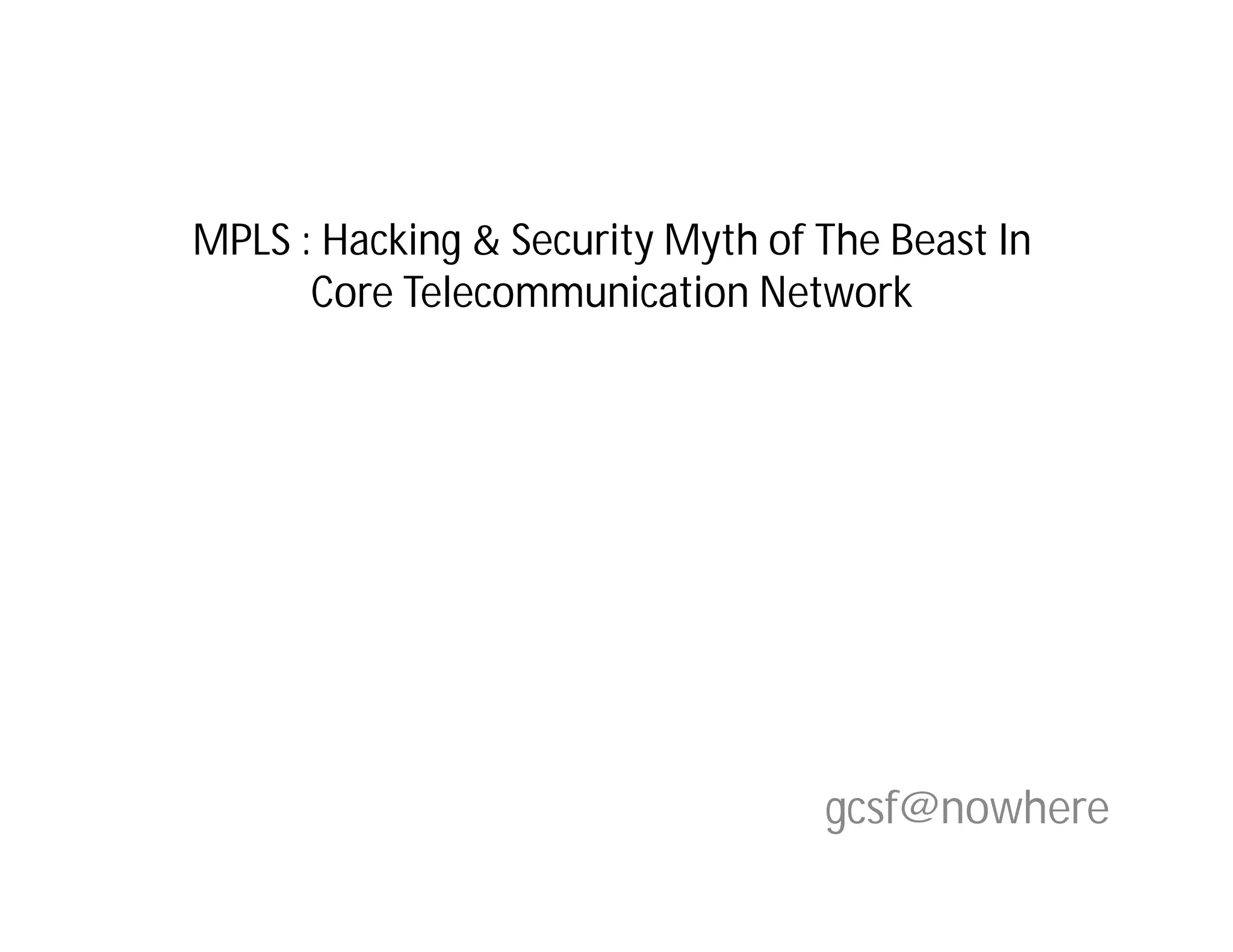 This document discusses potential security issues related to MPLS networks. It begins by defining some MPLS terminology like Label Distribution Protocol, Label Switched Path, and Label Switching Router. It then explores ideas like an attacker rewriting MPLS labels to redirect traffic or injecting spoofed messages into the Label Distribution Protocol to manipulate label mappings. However, the document notes that actually exploiting these issues against a real telecom backbone would be very difficult or impossible due to network controls and monitoring. The goal is to raise awareness of security considerations for MPLS rather than enable real attacks.