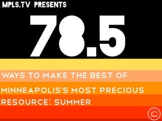 mpls.tv has compiled a list of 78.5 events and activities to enjoy Minneapolis during the summer, encouraging residents to take full advantage of the warm weather. The list includes outdoor concerts, art exhibits, local festivals, and unique entertainment options, ranging from food events to improv showcases. Residents are invited to engage with the community by sharing their experiences using the #mplssummer hashtag on social media.