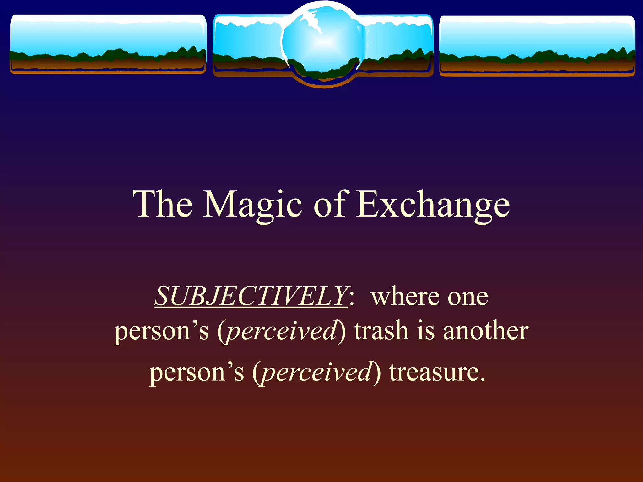 The document discusses the concept of voluntary exchange and how it creates wealth. It explains that [1] when two parties voluntarily agree to exchange goods where each values what they receive more than what they give up, both parties can benefit and wealth is created. [2] It also discusses how the use of money as a medium of exchange reduces transaction costs and makes exchanges more efficient compared to barter. [3] Asymmetric information and lack of information can reduce the benefit of exchanges by preventing both parties from knowing they will be better off.