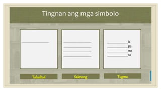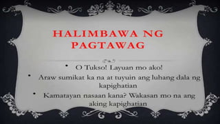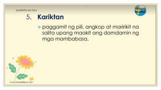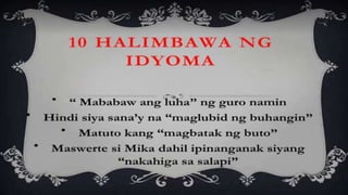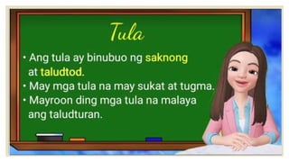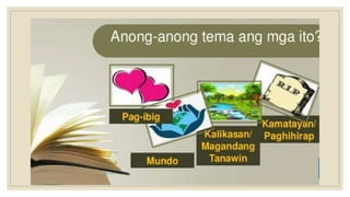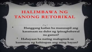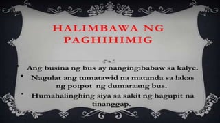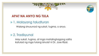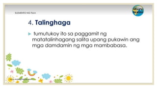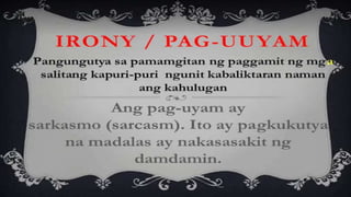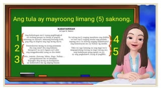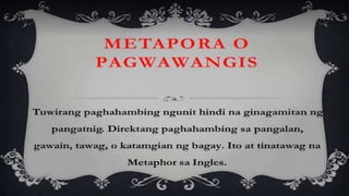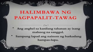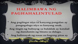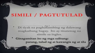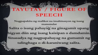 Naglalaman ang dokumento ng mga halimbawa ng mga tayutay, tulad ng paghahambing ng pag-ibig sa tubig at sa malamig na kamay ng isang mang-awit. May nilalaman ding gawain na humihiling na magbigay ng tig-dalawang halimbawa ng tayutay. Ang dokumento ay isinulat sa konteksto ng kabayanihan ni Lope K. Santos.