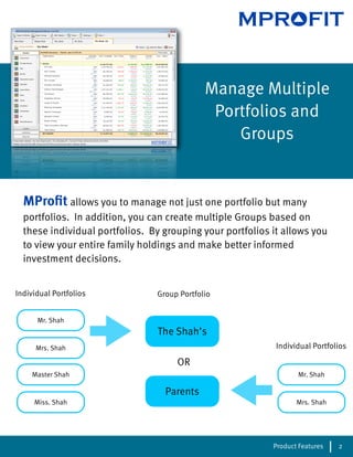 MProfit is a desktop portfolio management software designed for Indian retail investors and NRIs to manage various asset classes, including stocks, mutual funds, ULIPs, and real estate. It offers features like income tracking, transaction management, and comprehensive reporting capabilities to help users analyze their investments effectively. The software is available for a monthly fee and supports multiple portfolios, along with several automated financial management tools.
