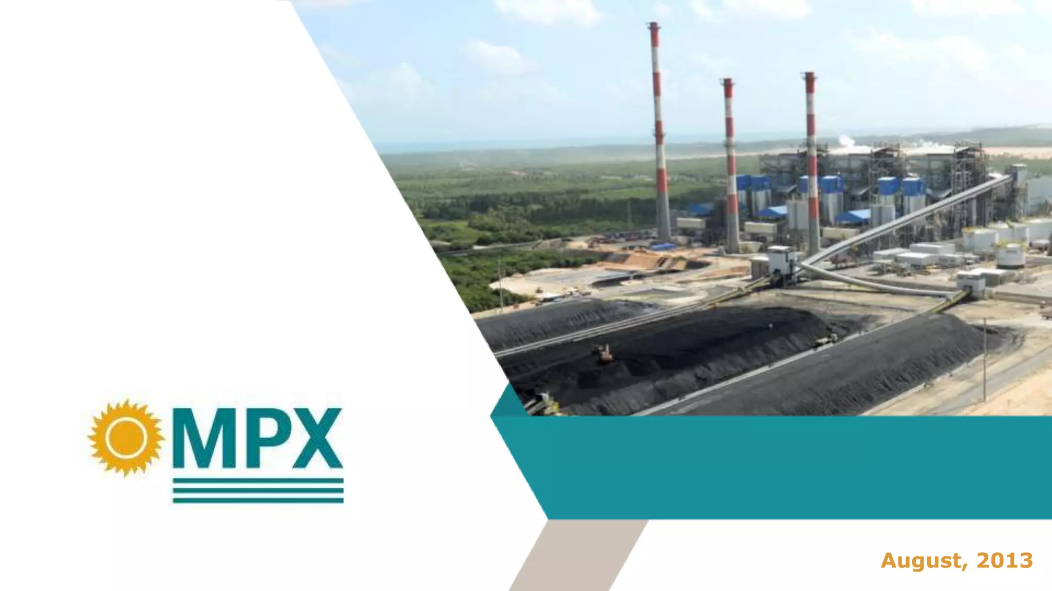 The document provides background information on MPX Energia S.A., a Brazilian energy company. It summarizes MPX's portfolio of power generation and natural gas assets, including operating power plants generating annual revenues of $878 million and additional assets under construction that will provide $620 million in revenues. It also outlines MPX's ownership in gas fields that supply its power plants in Parnaiba Basin, with recent exploration successes. Financially, MPX has $3.1 billion in total debt, with plans to replace short-term debt at the holding level with long-term debentures.