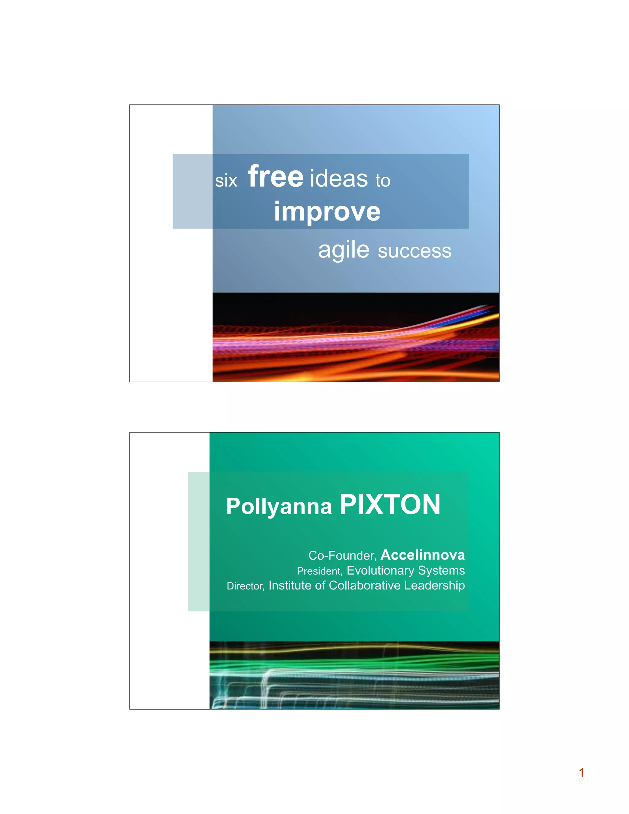 The document discusses six ways to improve agile success through building trust, giving ownership, letting teams make decisions, fixing processes, having the right people, and emphasizing integrity. The key points are: