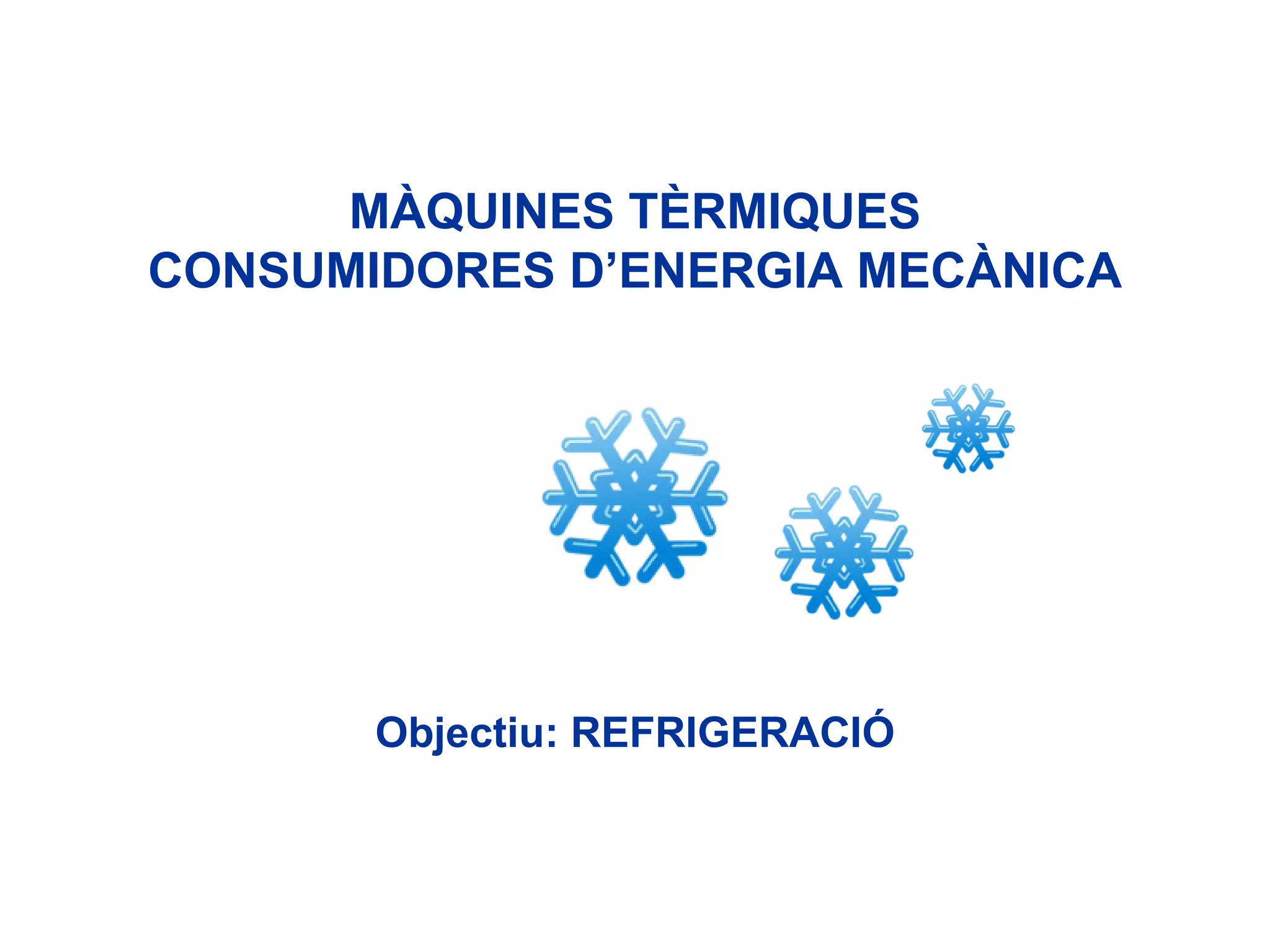 La refrigeració consisteix a fer que la temperatura d’una càmara baixi i es mantingui per sota de la de l’ambient. Per fer-ho cal provocar un flux d’energia tèrmica antinatural, extraient la calor d’un focus fred i cedint-la a un de calent.