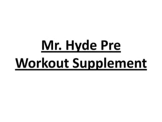 Mr. Hyde Pre-Workout Supplement is designed to be the most intense pre-workout supplement on the market. It contains high doses of leucine, proprietary stimulant blends, and agmatine sulfate to boost energy, break through training plateaus, and enhance muscle pumps. The supplement provides pre-workout energy and focus to support an extreme weight lifting session.
