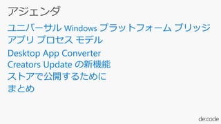 Windows 10 のアプリを柔軟にすべく Desktop Bridge が Anniversary Update より提供されます。そして、Creators Update へと機能強化を続けています。既存のインストーラーを Appx パッケージ化するだけでなく、Desktop Bridge を使うことで魅力をアプリにプラスすることが可能となります。本セッションでは、Desktop Bridge の基本 (A) を押さえながら、UWP アプリの制限を超えた新しい機能を持ったアプリの作り方 (Z) に迫っていきます。合言葉は、「ブリッジが切り開く未来を活用しよう」です。