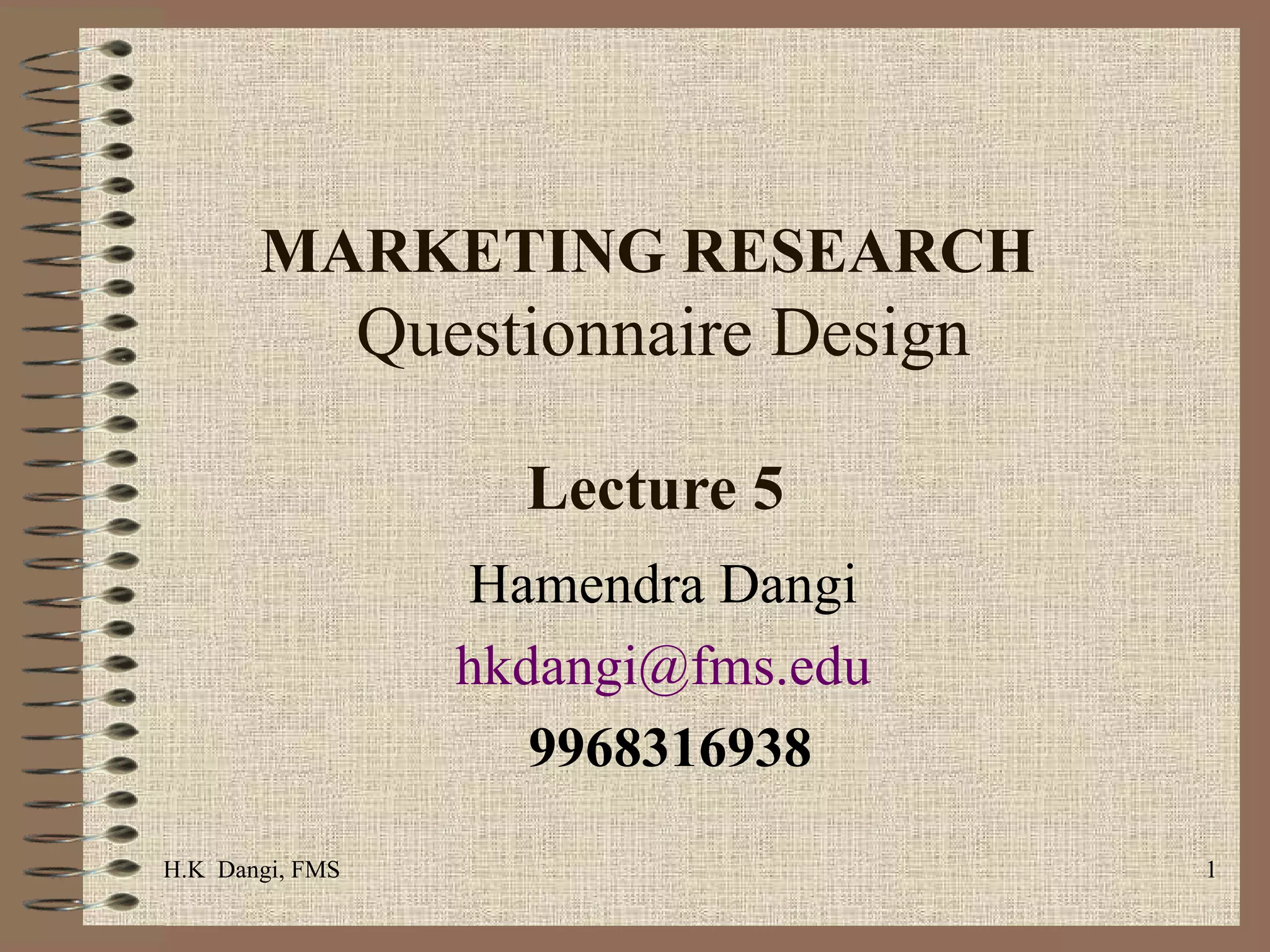The document provides guidance on designing effective questionnaires for market research. It discusses important objectives of questionnaires such as translating information needs into clear questions. It also covers best practices for question structure, wording, and format to reduce errors and encourage participation. An interactive statement is recommended to explain the survey purpose and ensure confidentiality. Pretesting the questionnaire on a small sample is also emphasized to identify and address issues before full deployment.