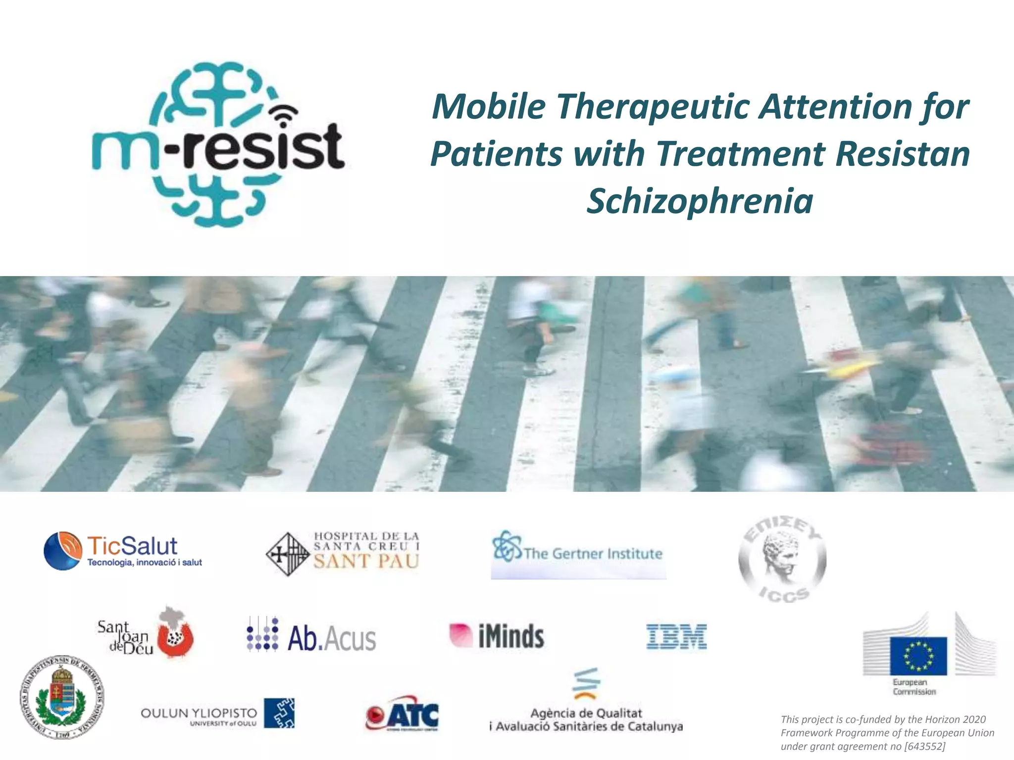 This project is co-funded by the Horizon 2020 Framework Programme of the European Union under grant agreement number 643552. The project focuses on providing mobile therapeutic attention for patients with treatment resistant schizophrenia. The grant agreement number for this project is 643552.