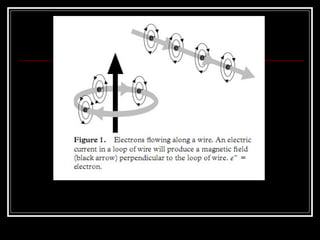 1) When electrons flow in a wire or loop, they produce magnetic fields around them. Hydrogen protons in the body also act like tiny magnets when placed in a strong magnetic field.