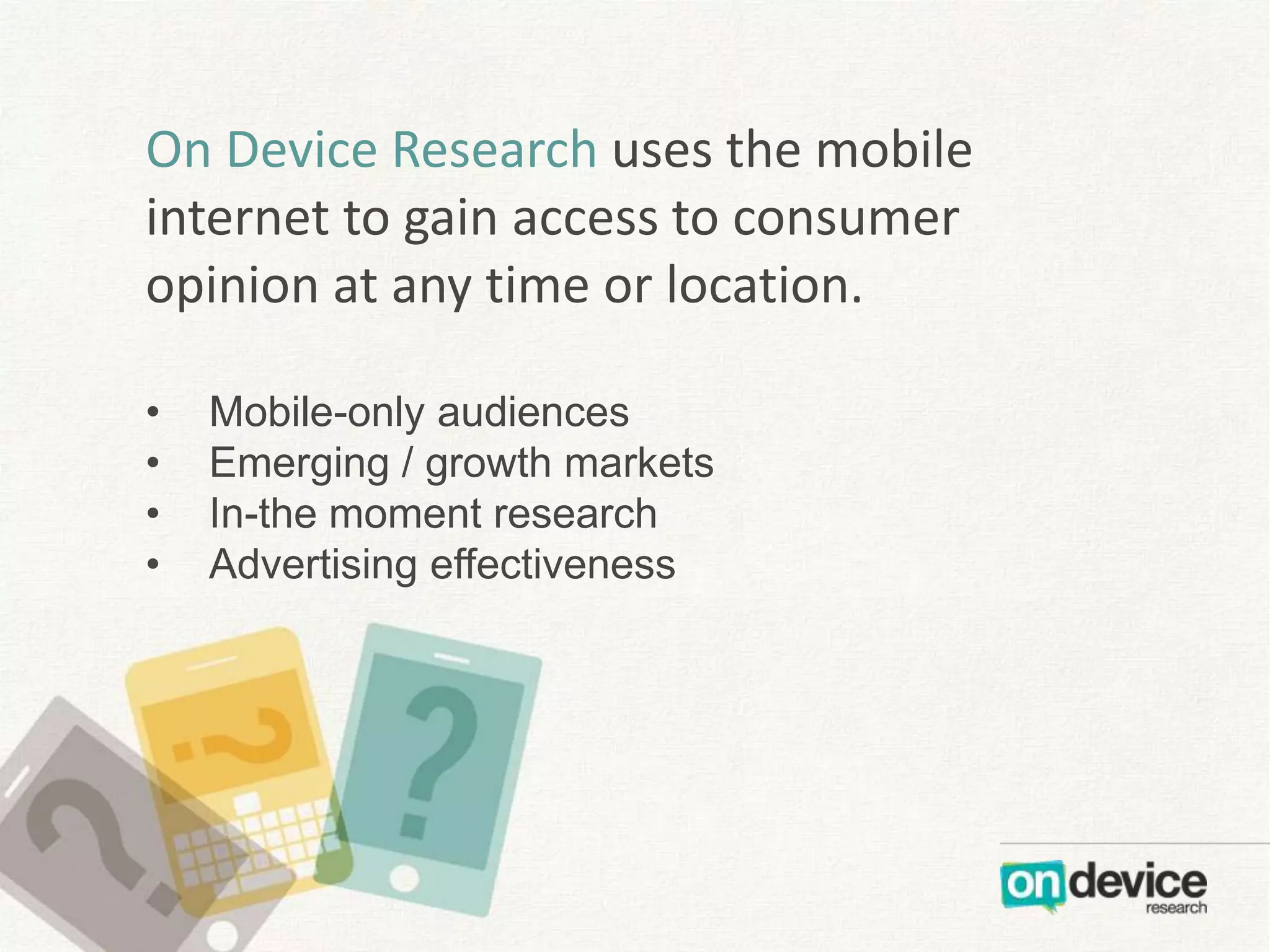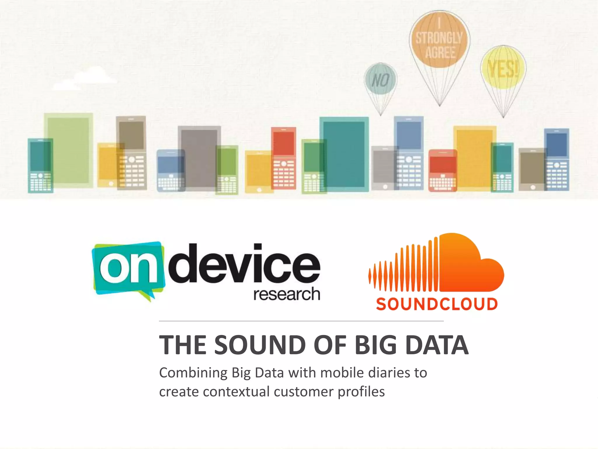 The document discusses the integration of big data with mobile diaries to create contextual customer profiles, emphasizing emerging mobile-only audiences and marketing strategies. It highlights the challenges of big data in understanding consumer interactions and motivations, and outlines a methodology for conducting mobile-based research. Key findings reveal user engagement patterns and preferences, particularly among active SoundCloud users, and introduces a survey 'chunking' approach to enhance data collection efficiency.