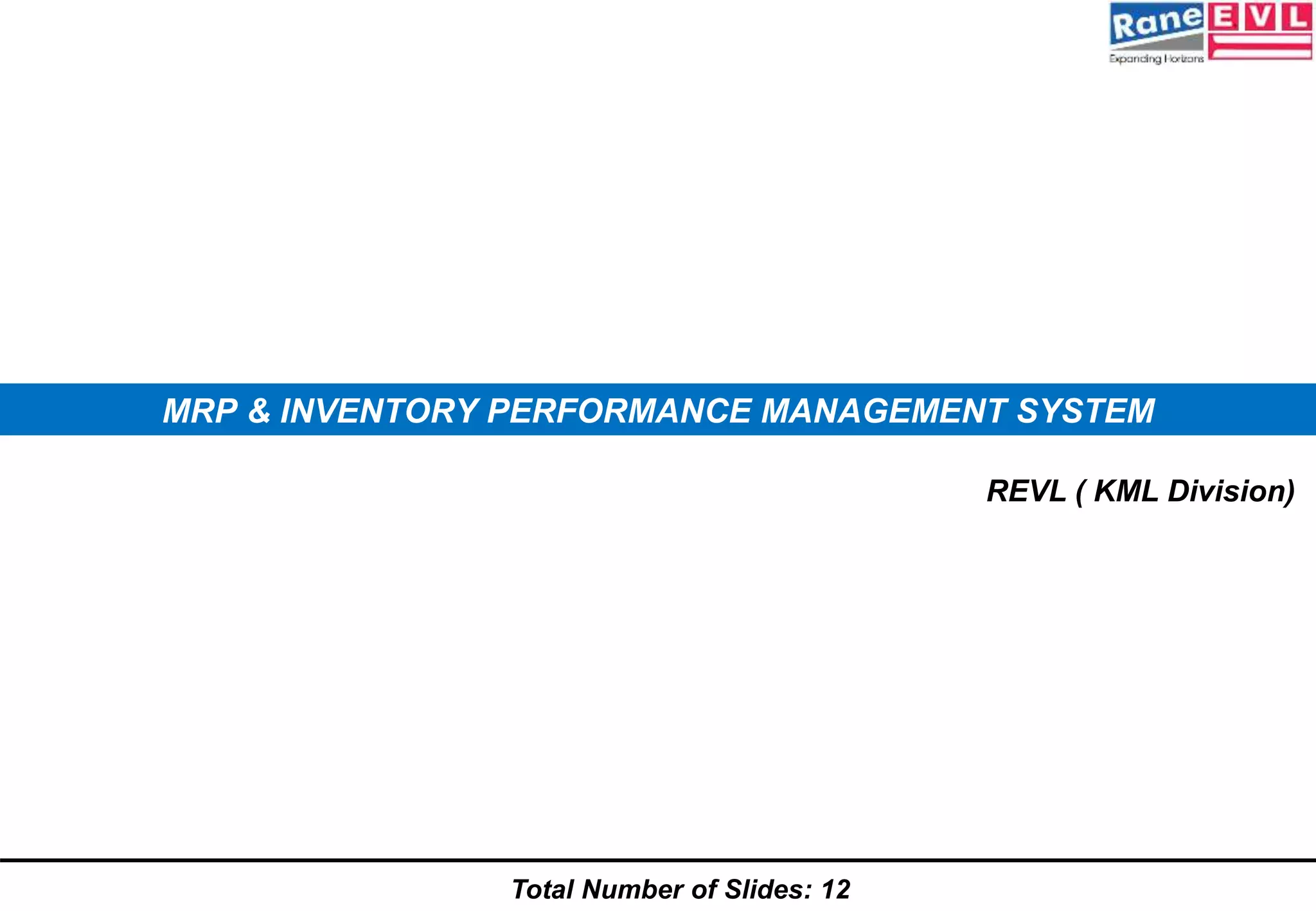 This document describes an MRP and inventory performance management system implemented at a valve manufacturing company. The 11-slide presentation covers the following key points: