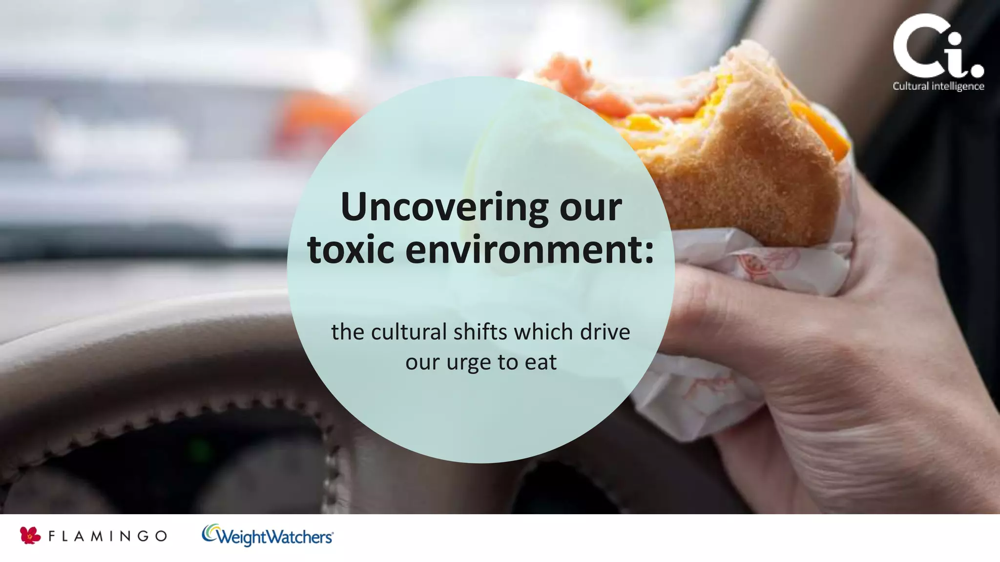 This document discusses 6 cultural drivers that are breaking down defenses against overeating: rogue food invading all spaces like homes, offices, and cars; a hyperactive culture where people feel constantly busy even if sedentary; the informalization of culture with fluid routines and less structured meals; these trends fuel snacking becoming ubiquitous. Weight Watchers harnessed this cultural understanding to shape a new strategy, running 4 PR campaigns over 12 months with experts to highlight how the environment is stacked against healthy choices. This approach led to their most successful PR results with 500% more editorial reach than in 2012.