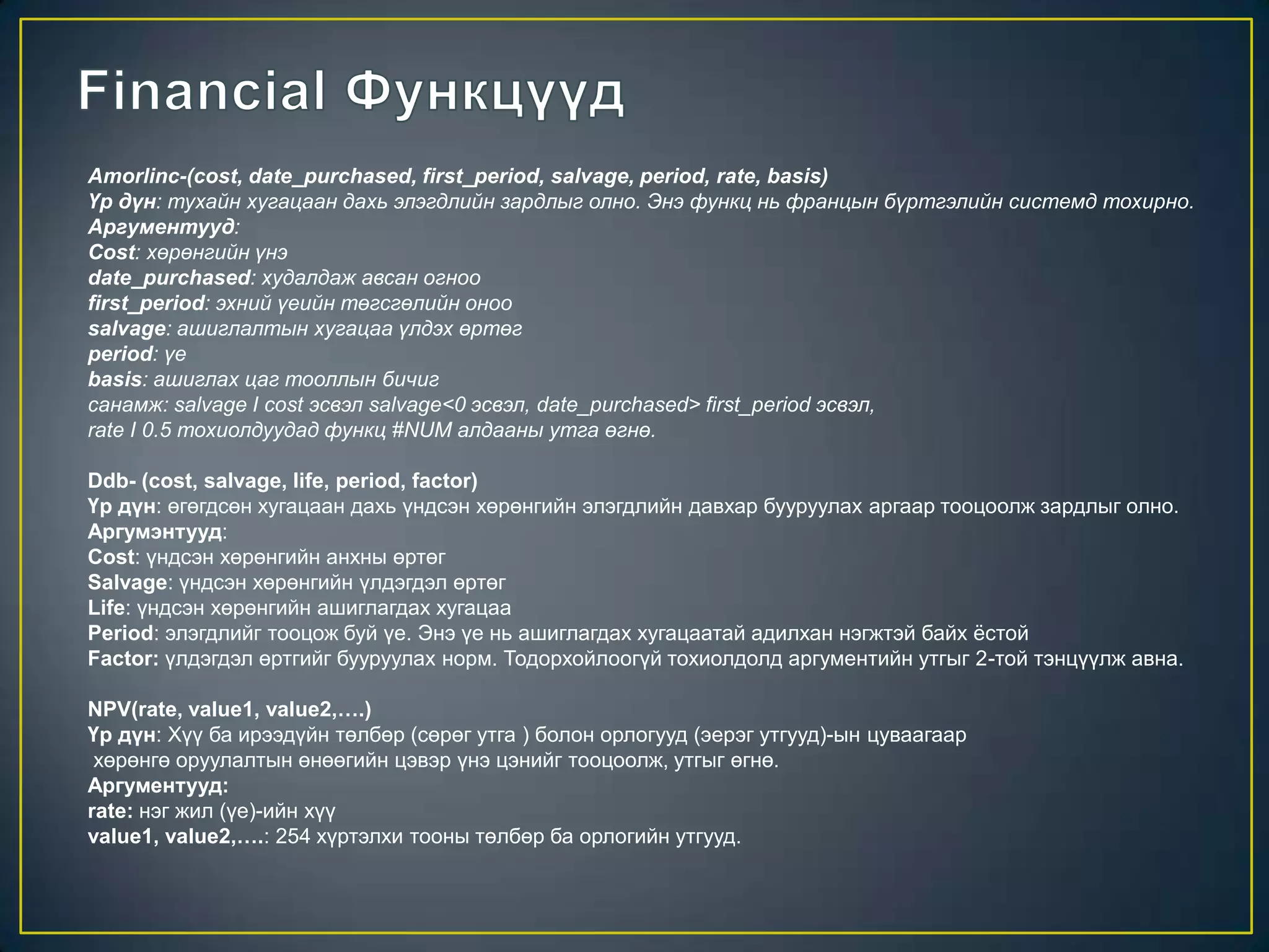 Excel програмын тухай ойлголт 1 Similar to Ms excel томъёонууд