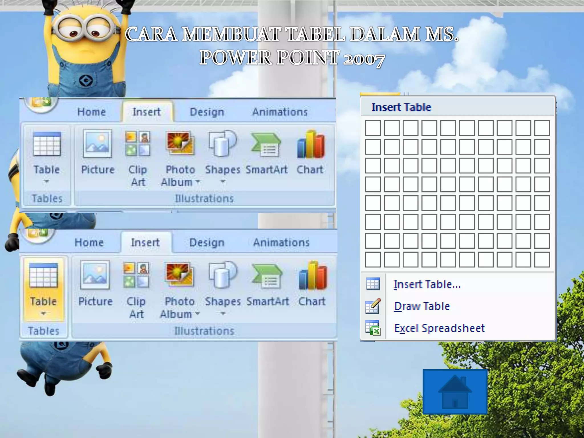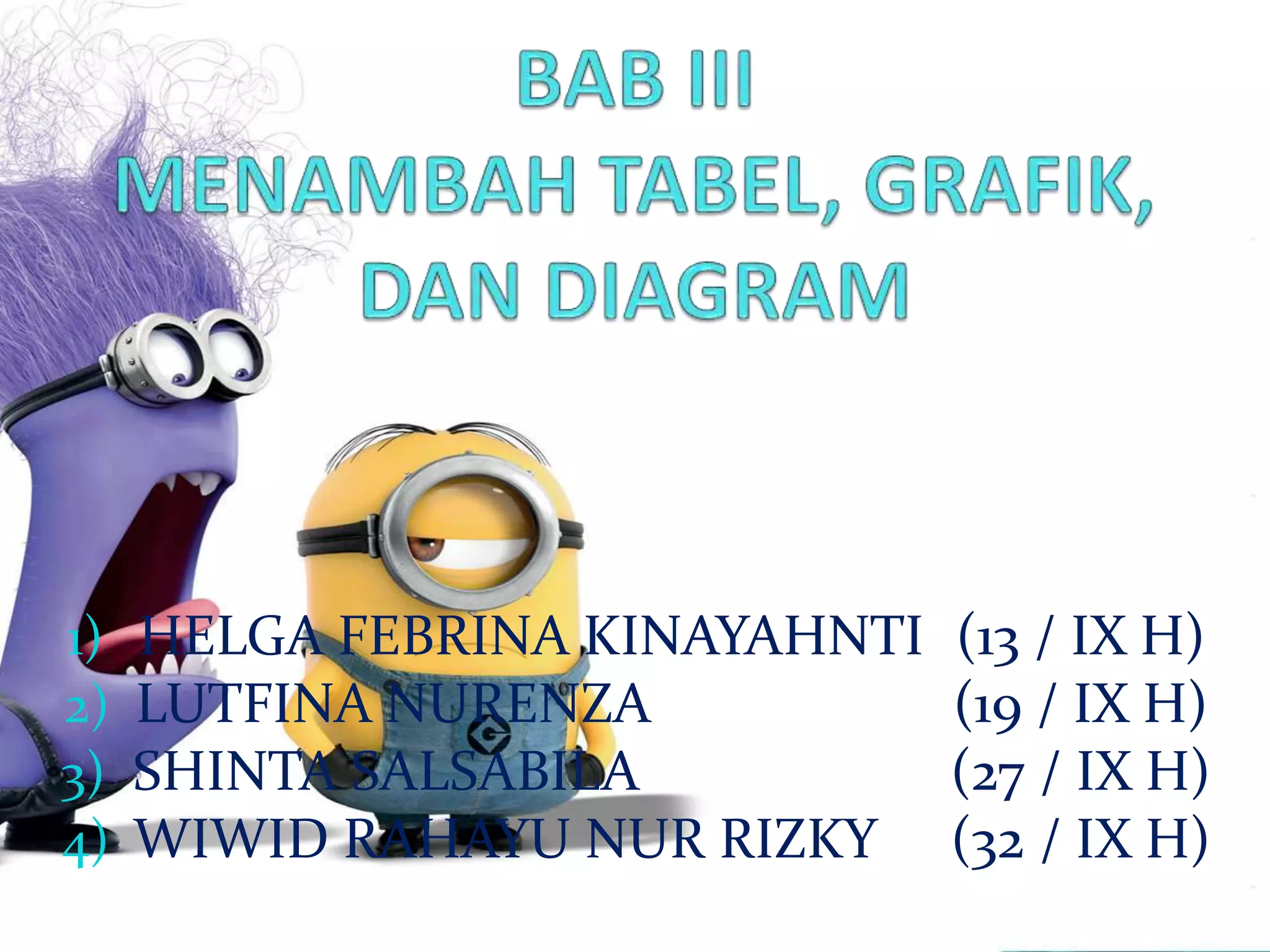 Dokumen ini mencakup informasi tentang cara membuat grafik, diagram, dan tabel dalam Microsoft PowerPoint 2007. Indikator evaluasi meliputi kemampuan siswa untuk membuat berbagai elemen visual dalam presentasi. Terdapat juga pertanyaan evaluasi terkait langkah-langkah pembuatan tabel dan grafik.