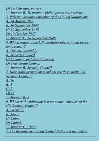 3. Pakistan became a member of the United Nations on: