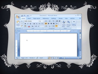 The document provides instructions on how to use Microsoft Word 2003, including opening the program, using the various toolbars and menus, typing and formatting text, deleting and undoing actions, copying/cutting and pasting text, checking spelling and grammar, printing documents, and saving documents. It describes the basic functions and user interface of Microsoft Word.