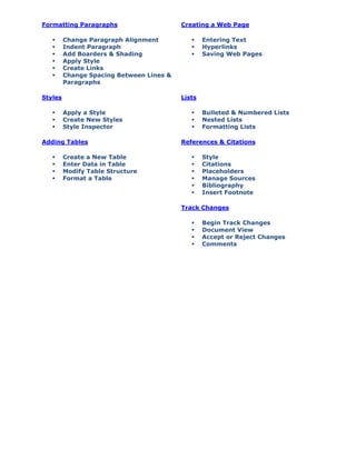 This document provides an overview of the key features and functions in Microsoft Word 2007, including: