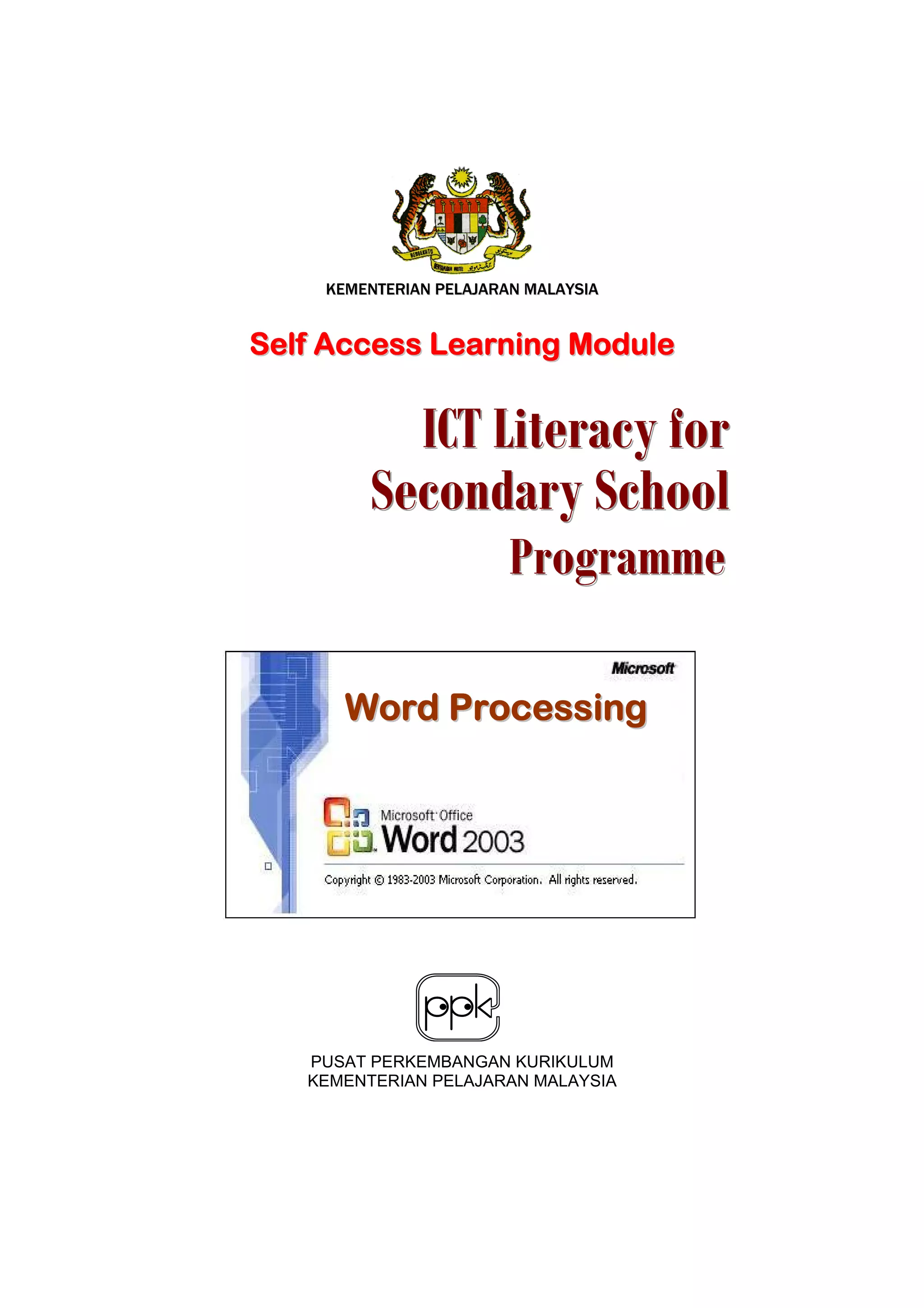 This document provides an introduction to Microsoft Word 2003 through a series of activities for students. The document outlines 10 activities that guide students on how to launch Word, create and save documents, enter and format text, and print documents. The goal is for students to learn basic word processing skills and be able to produce articles and poems by the end of the module.