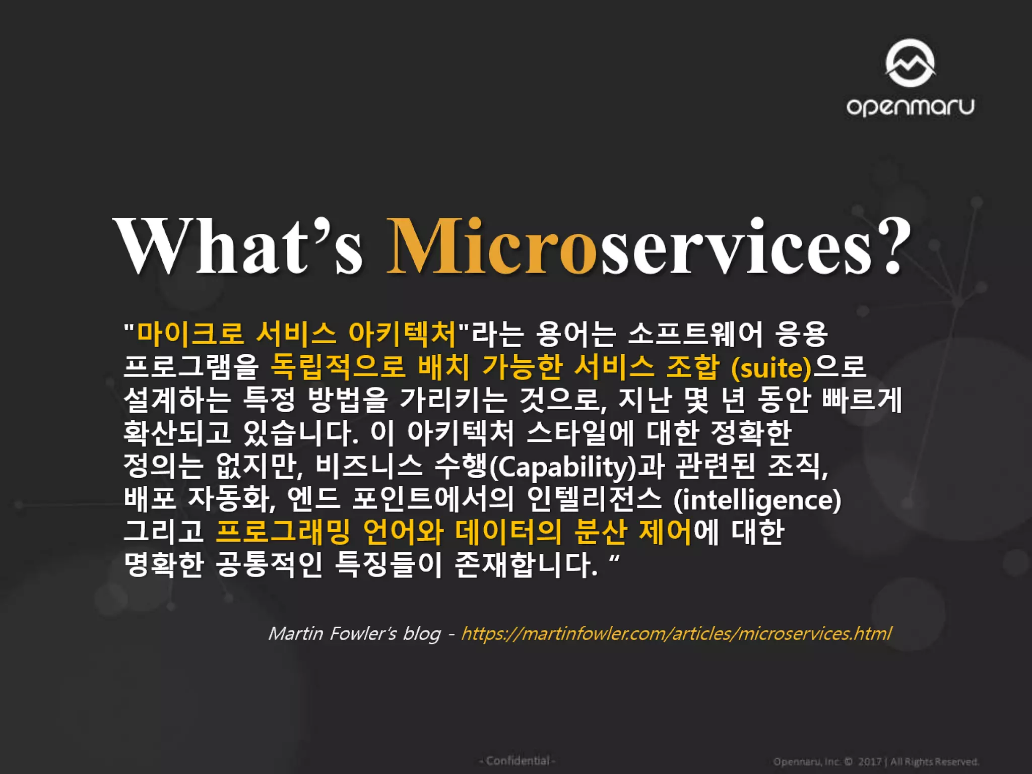 마이크로서비스는 애플리케이션 구축을 위한 아키텍처 기반의 접근 방식입니다. 마이크로서비스를 전통적인 모놀리식(monolithic) 접근 방식과 구별 짓는 기준은 애플리케이션을 핵심 기능으로 세분화하는 방식입니다. 각 기능을 서비스라고 부르며, 독립적으로 구축하고 배포할 수 있습니다. 이는 개별 서비스가 다른 서비스에 부정적 영향을 주지 않으면서 작동(또는 장애가 발생)할 수 있음을 의미합니다.
