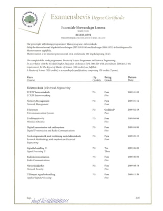 MSc degree certificate