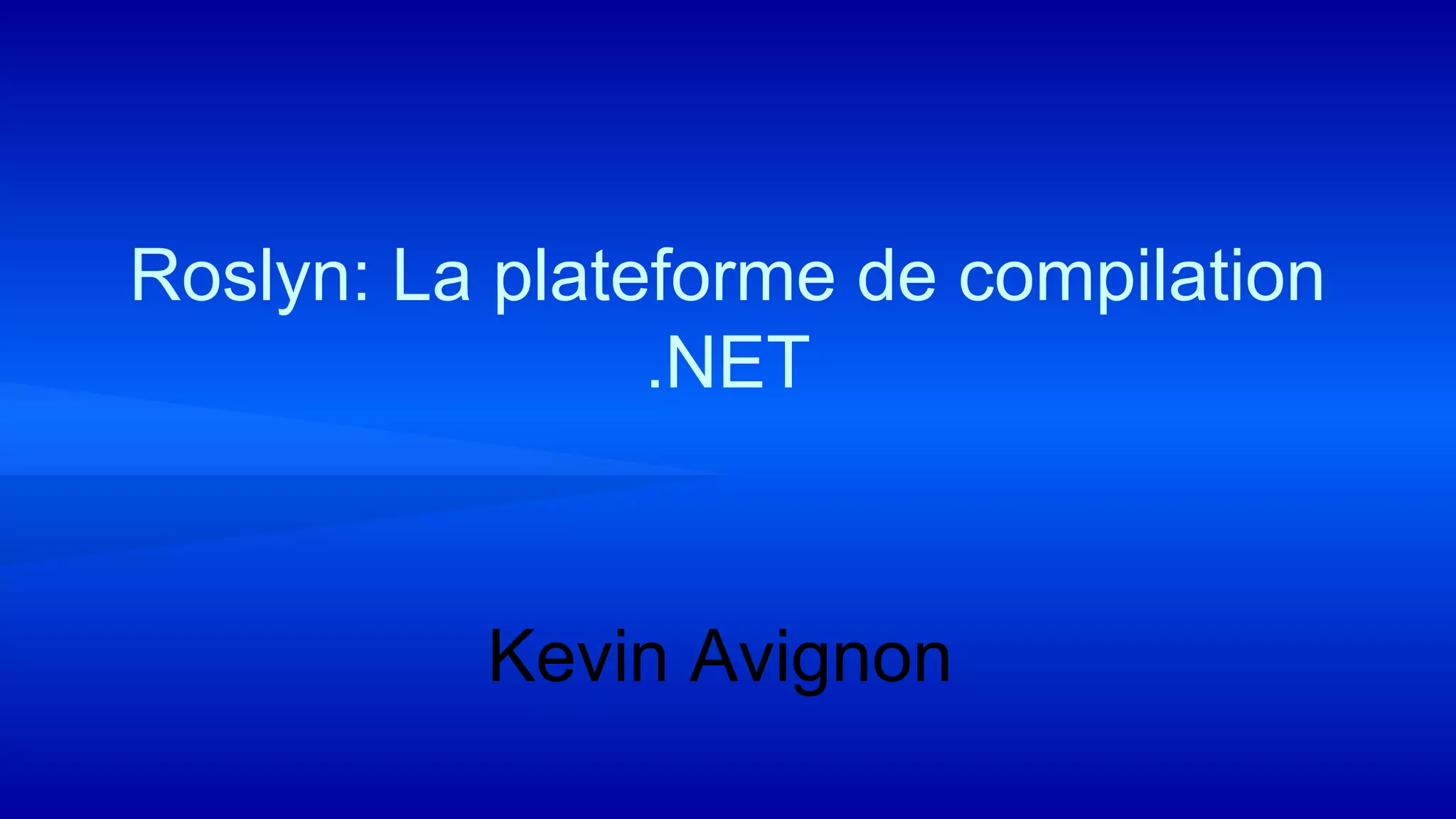 La présentation traite de Roslyn, la plateforme de compilation .NET de Microsoft, décrivant son rôle en tant que service de compilation et ses APIs pour l'inspection et la transformation de code. Elle couvre divers sujets, allant des bibliothèques utilisant Roslyn à la création d'analysers et de 'code fix providers', tout en exposant les pièges à éviter lors de l'analyse de code. Des ressources et des références complémentaires sont également fournies pour approfondir le sujet.
