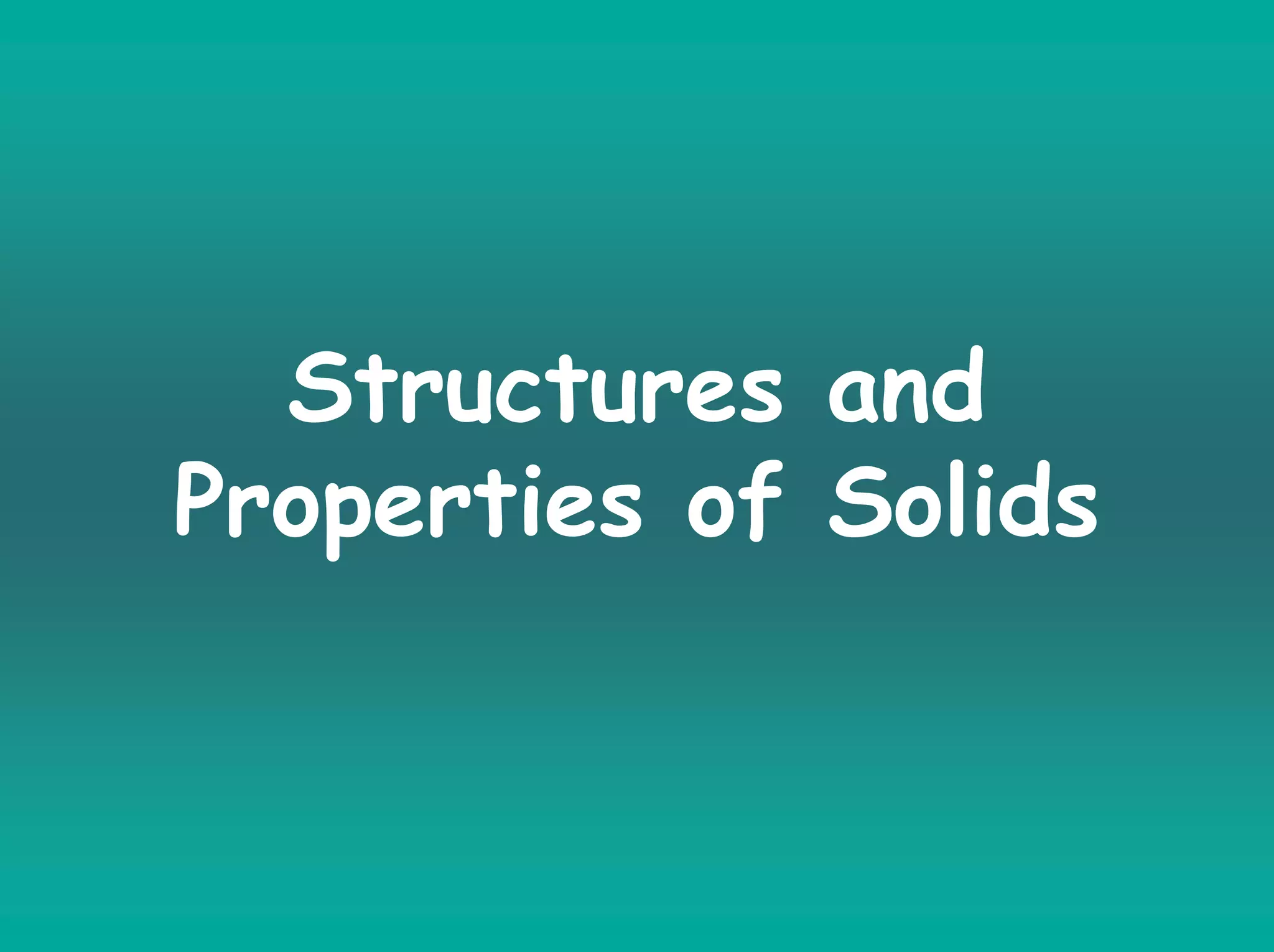 The document outlines the structures and properties of solids, including classification based on degree of order and various bonding types. It covers basics of solid-state chemistry, characterization methods, and synthesis techniques alongside visualizations of crystal structures such as close-packed arrangements. Key examples include the properties of covalent, ionic, and metallic solids, as well as specific structure types and rules like Pauling's rules.