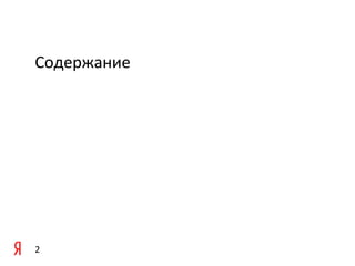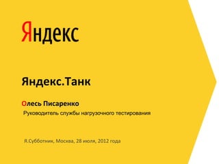 Документ описывает Яндекс.Танк, инструмент для нагрузочного тестирования, разработанный с акцентом на производительность и простоту использования. Он включает примеры и детали настройки, а также предоставляет информацию о различных типах нагрузок и конфигурациях. Также обсуждаются ссылки и дополнительные ресурсы для углубленного изучения темы.