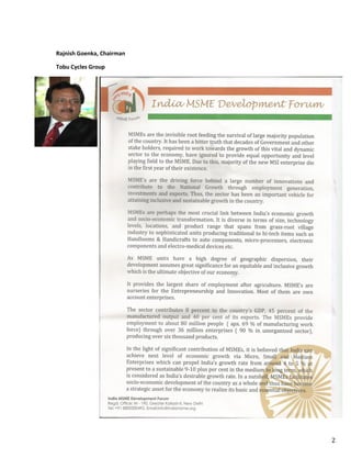 2. It provides an overview of recent government initiatives to promote the MSME sector, including constituting a task force and council to develop policies and review the sector's growth.