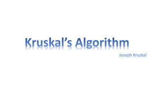 The document discusses algorithms for finding minimum spanning trees in graphs. It explains that a spanning tree is a subgraph of a graph that connects all vertices without cycles. Kruskal's and Prim's algorithms are described for finding the minimum spanning tree - the spanning tree with lowest total edge weight. Both algorithms use priority queues or sorting to iteratively add edges in order of weight and avoid cycles.