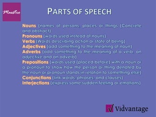 Int Con Adv Prep Noun Verb Pro Adj