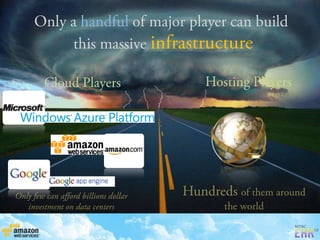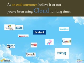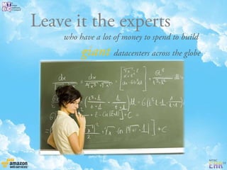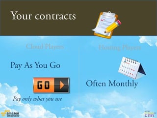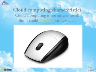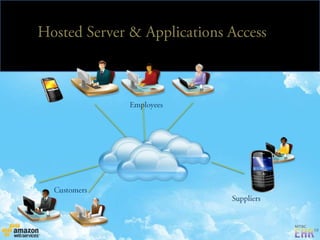 This document outlines a presentation on hosting MTBC's EMR software on Amazon EC2. It introduces cloud computing concepts and Amazon EC2. It then describes how MTBC's EMR would be installed on an EC2 server and made available to clients remotely via Microsoft RemoteApp. The benefits to clients and MTBC are outlined, including reduced costs and maintenance compared to clients hosting EMR locally. It concludes with a demonstration of the AWS management console and hosted EMR solution.