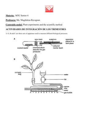 1) An experiment was conducted to determine the effect of pH on the activity of the enzyme catalase. Catalase breaks down hydrogen peroxide into water and oxygen. 2) Filter paper soaked in a catalase solution was placed in test tubes containing hydrogen peroxide solutions of varying pH levels. The time taken for the filter paper to rise to the surface as oxygen bubbles were produced indicated the enzyme activity. 3) The results showed that pH affected the time taken for the filter paper to rise, with more acidic or more alkaline solutions taking longer than neutral pH solutions, demonstrating pH's effect on catalase activity.