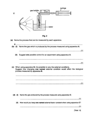 (c) Suggest how this experiment could be changed to investigate the effect of temperature on the activity of catalase.