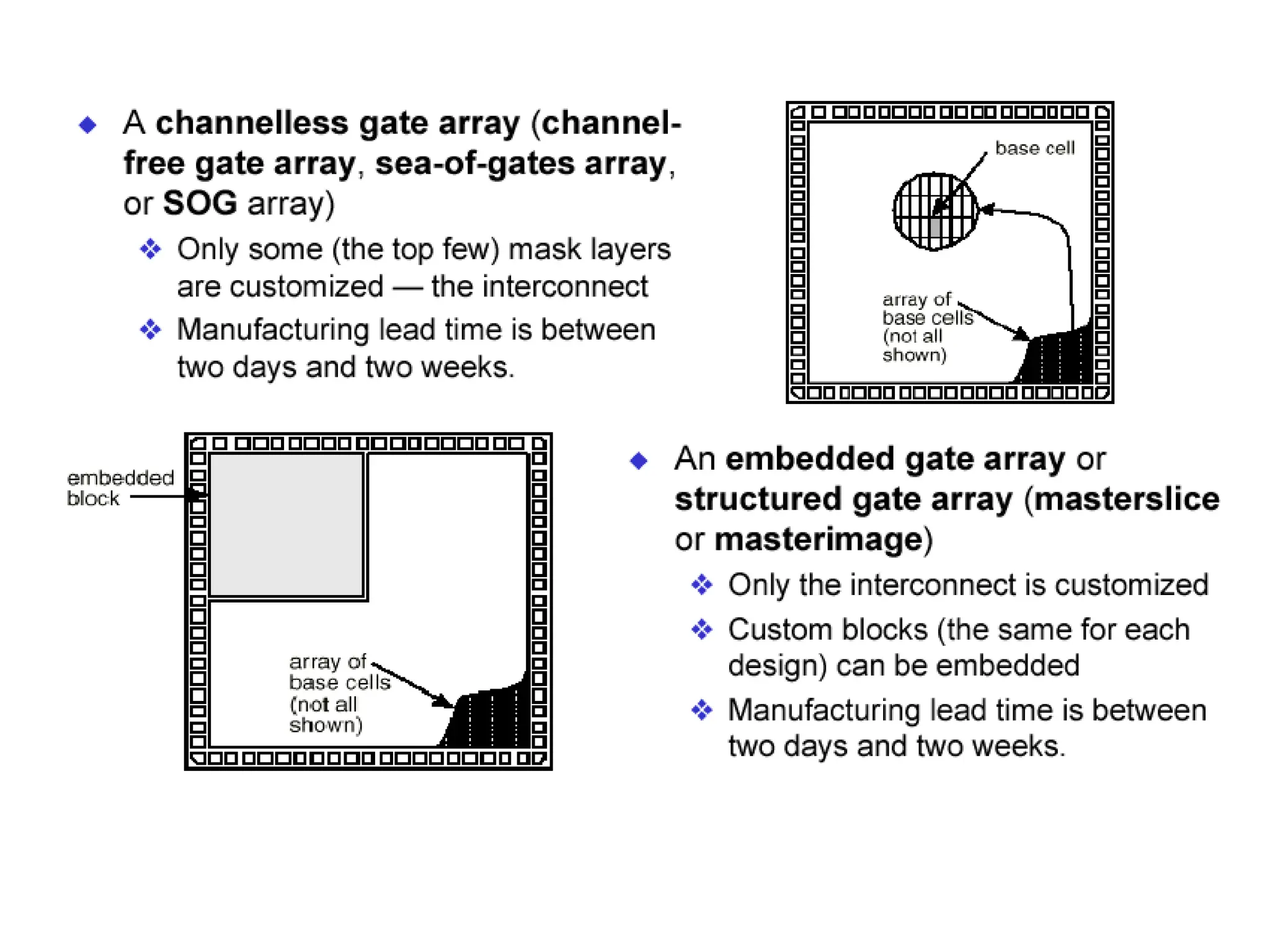 Characteristics FPGA Gate arrays Standard cells Full custom