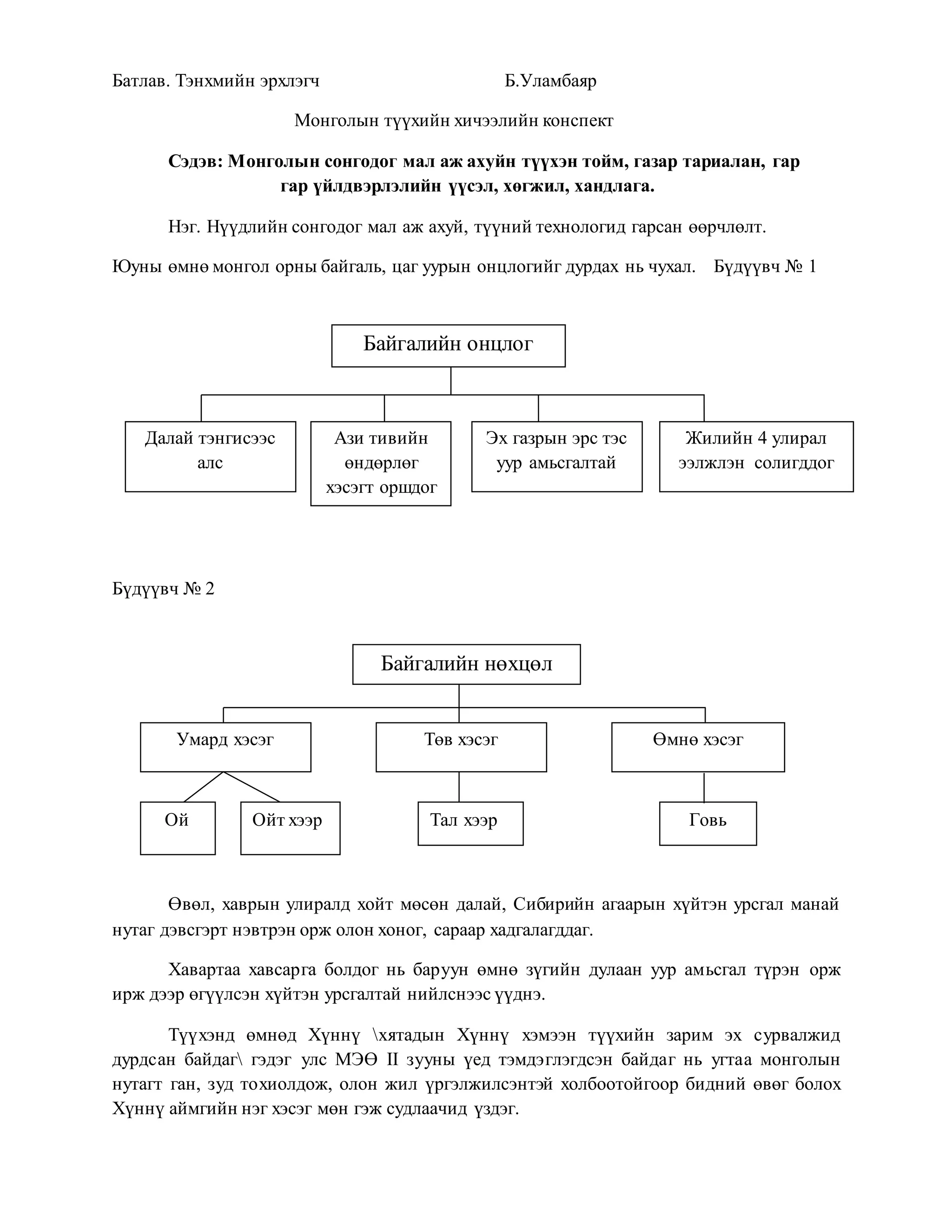 Монголын сонгодог мал аж ахуйн түүхэн тойм, газар тариалан, гар гар үйлдвэрлэлийн үүсэл, хөгжил, хандлага.
