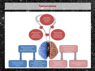 Документ обсуждает развитие медиаиндустрии, с акцентом на растущее потребление контента через connected TV и личные пакеты услуг. МТС представляет свои достижения в области цифрового телевидения, включая увеличение каналов и развитие гибридной платформы для многопрофильного вещания. Приводится также сравнение ТВ-индустрий в России и странах БРИКС по показателям экономики и телесмотрения.
