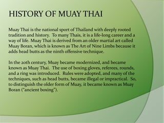 Muay Thai is Thailand's national sport with a rich history, evolving from the ancient art of muay boran known for its diverse striking techniques. Coban's Muay Thai camp in NYC emphasizes not just fighting skills but also personal growth and physical conditioning, integrating programs in muay thai, boxing, strength training, and Brazilian jiu jitsu. The camp is led by experienced trainers and aims to foster a lifestyle of hard work and honor among its practitioners.