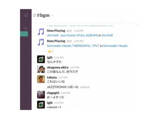 2か月運用してみた感想 • わりと便利 • BGM談義できる • 楽しい