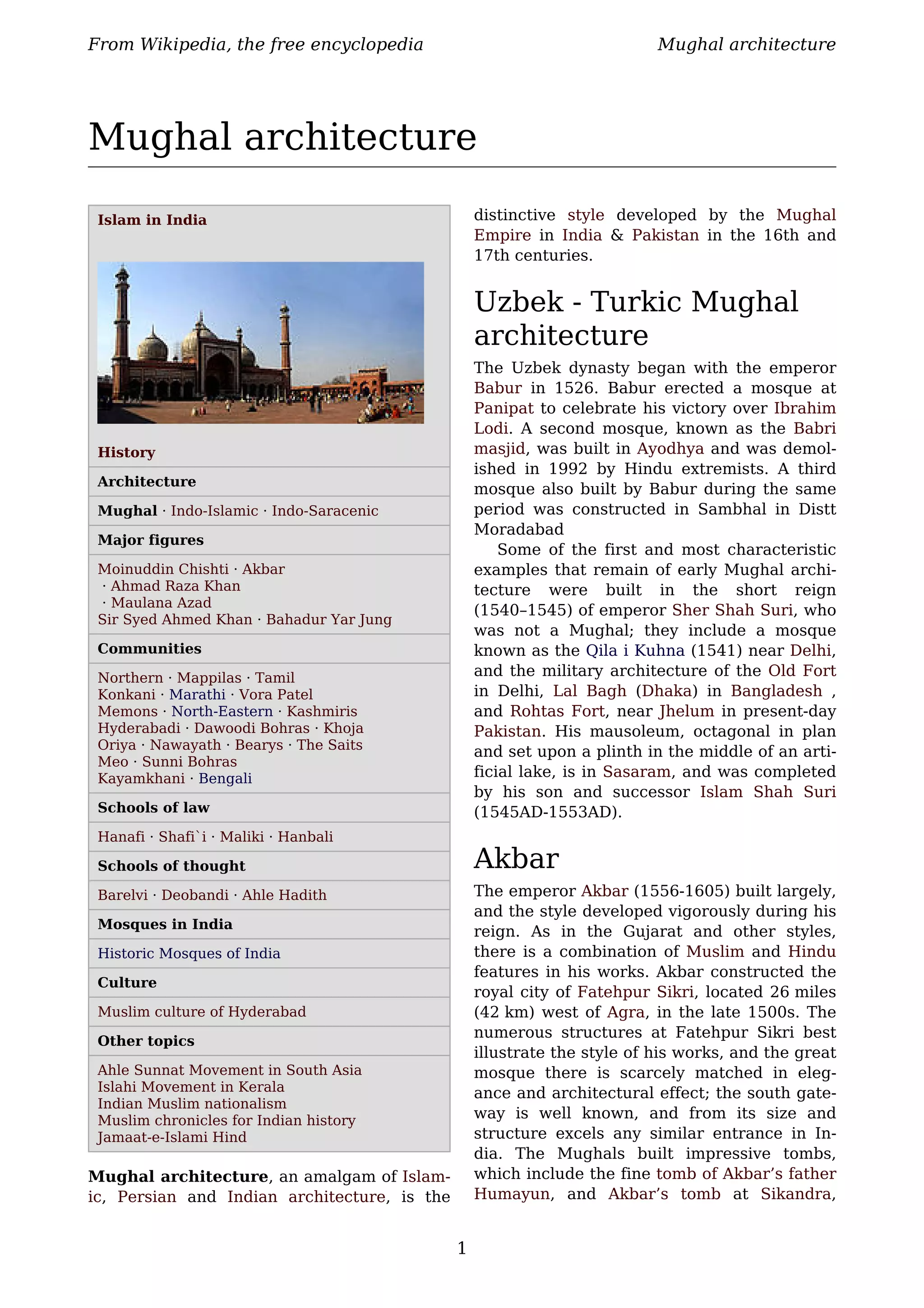 Mughal architecture is a style that developed under the Mughal Empire between the 16th and 17th centuries, blending Islamic, Persian, and Indian elements. Key emperors like Akbar, Shah Jahan, and Aurangzeb commissioned many grand buildings, including mosques, tombs, forts, and palaces. The Taj Mahal, built under Shah Jahan, is considered one of the most beautiful structures ever created and exemplifies the peak of Mughal architectural achievement.