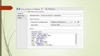 The document discusses various connectors in Mule ESB including the File, Database, and Web Service connectors.
