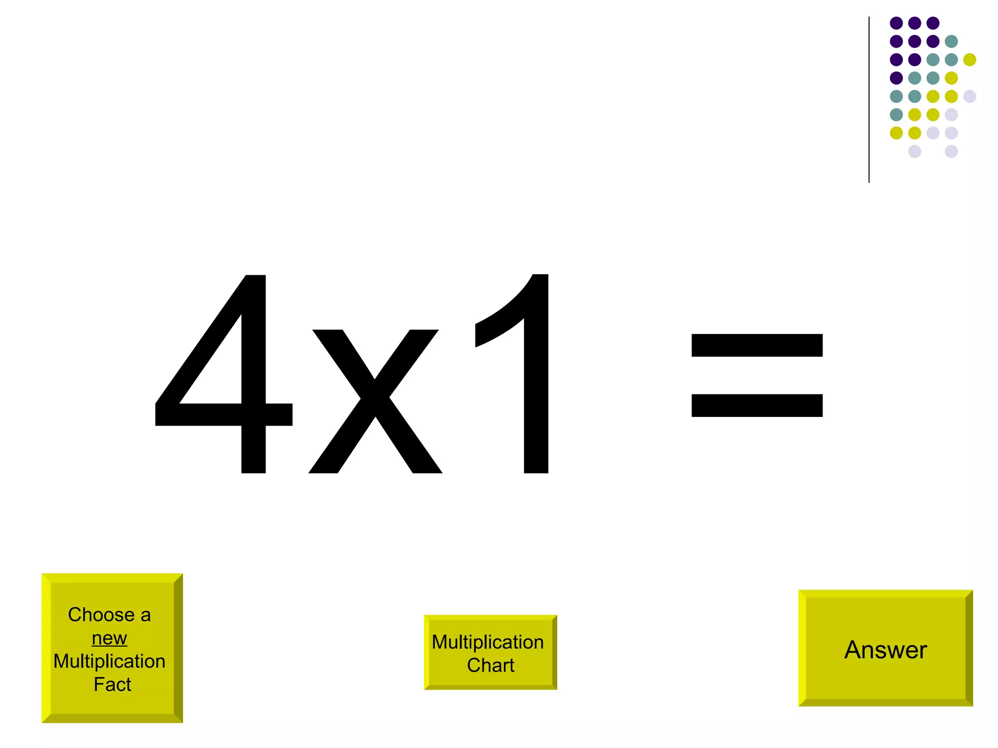 The document contains a series of multiplication problems involving multiplying 4 by various single-digit numbers from 0 to 10, as well as counting by 4s up to 40. The format suggests an interactive multiplication chart or worksheet where the user is prompted to solve problems or select answers.