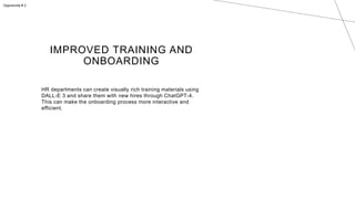 HR professionals can use ChatGPT-4 to engage with job applicants in more engaging ways by sharing images, diagrams, and visual representations of job roles, company culture, and office spaces to supplement text-based conversations. This enhanced communication can help potential candidates better understand the work environment. HR departments can also leverage visual content and ChatGPT-4's multi-modal capabilities to improve training materials, candidate screening, employee feedback surveys, and more.