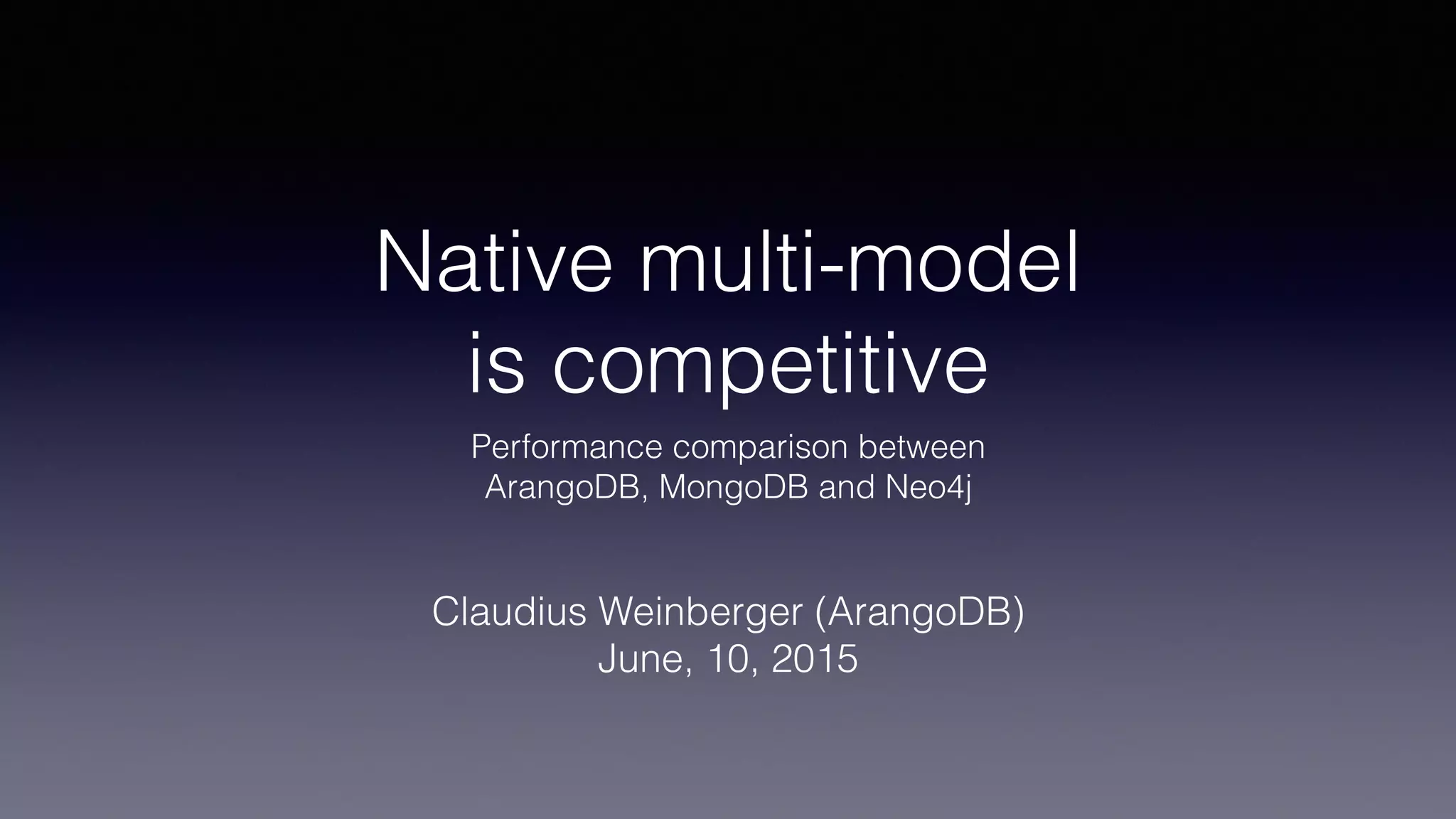 The document presents a performance comparison of native multi-model databases: ArangoDB, MongoDB, and Neo4j, using a dataset from a Slovakian social network. It outlines the test setup, including data characteristics, use cases like single reads/writes and aggregations, and benchmark criteria, emphasizing that ArangoDB serves as the baseline for performance metrics. It encourages readers to conduct their own benchmarks rather than solely trusting the presented results.