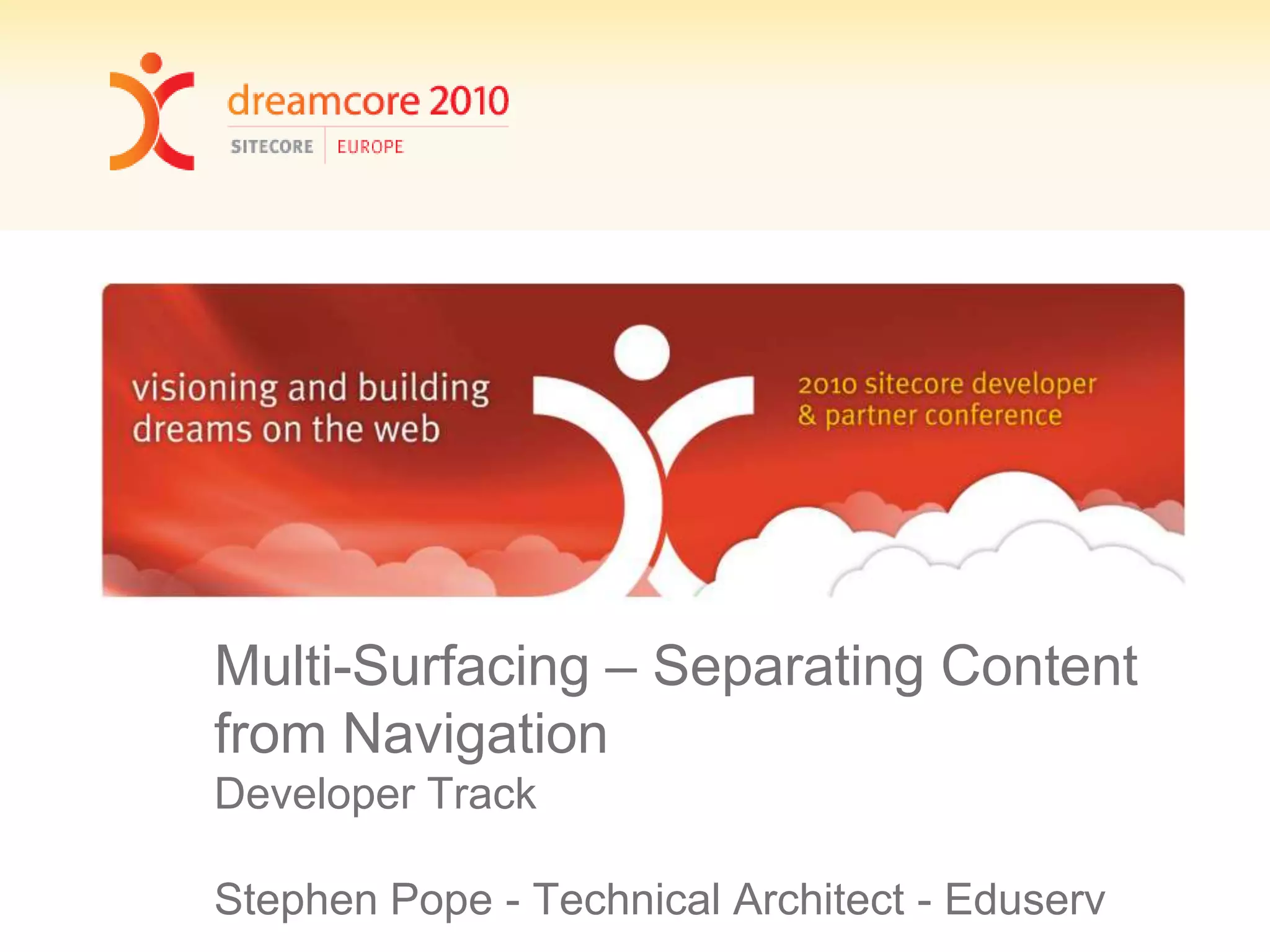 The document discusses a solution called "multi-surfacing" that was implemented for a large UK government department to consolidate disparate content from multiple sources and domains. The solution involved tagging content and mapping it to navigation nodes so that content could be pulled into different sections and domains while maintaining a consistent look and feel. This approach allowed the content to be restructured without large migrations and for content to appear in multiple places to be found more easily.