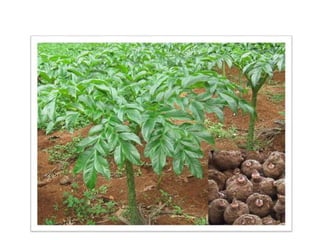 This document discusses multi-tier cropping systems for vegetable production in India. It provides examples of vegetable-based multi-tier systems including elephant foot yam grown with bitter gourd, ridge gourd, or bottle gourd. Data shows these intercropping systems can increase total yields and incomes compared to sole cropping. Multi-tier systems make better use of space, resources, and provide continuous income from multiple crops. While labor intensive, multi-tier cropping improves soil health and supports more sustainable agricultural production.