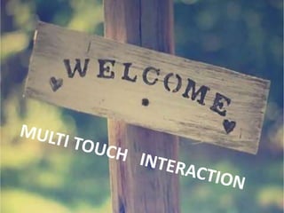 This document discusses multi-touch technology. It provides an overview of the history of multi-touch from 1982 onwards. It describes different types of multi-touch technologies including capacitive, resistive, optical and infrared. It outlines common multi-touch gestures and applications. It then focuses on frustrated total internal reflection (FTIR) as a new approach, describing how it works and its advantages over other methods like high resolution, low cost and scalability. It concludes that touch screens are the interface for the 21st century and FTIR provides a simple method for multi-touch displays.