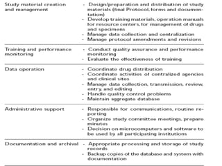 This document discusses multicentric clinical trials. It begins by defining clinical trials and introducing that a multicenter trial is conducted across multiple medical centers. Key points are that multicenter trials require standardization of procedures, uniformity, high data quality, and collaboration across sites. The document distinguishes between multi-site and multicentric studies, noting that in multicentric studies investigators at sites are co-investigators in planning and responsible for results, while in multi-site studies sites merely carry out tasks. Coordination in multicenter studies involves centralized activities like protocol development and data management to standardize procedures. Advantages include larger sample sizes and evaluating efficacy across populations. The document concludes by summarizing a phase II multicenter trial of sunit