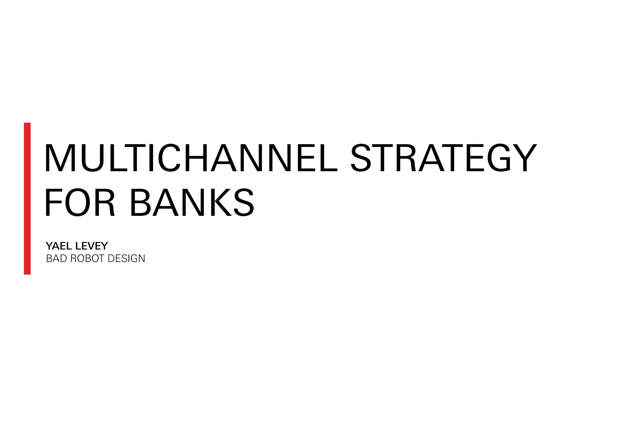 The document discusses the importance of a multichannel strategy for banks, highlighting the use of various customer touchpoints, including mobile and traditional channels, to enhance customer experience and profitability. It emphasizes the need for banks to differentiate channel functionality, optimize customer interactions, and utilize data to better understand and serve customers. A successful multichannel approach can help banks stand out in a crowded marketplace and improve customer satisfaction while managing costs.