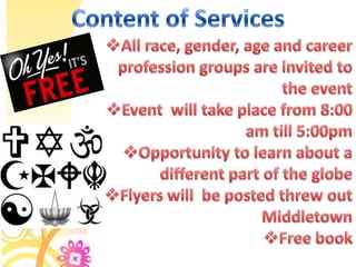 The document summarizes information about an upcoming Multicultural Fair event including: